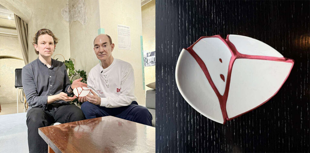 The first was UNBROKEN, a comprehensive rehabilitation center in Lviv for those injured during the war. At this facility, where art therapy is also practiced, a work was presented to Mr. Anton Kolomieitsev, the city’s Chief Architect. Mr. Kolomieitsev commented, “This beautiful vessel expresses solidarity. I would like to immediately consider a way to display it so that both patients and staff can see it.”